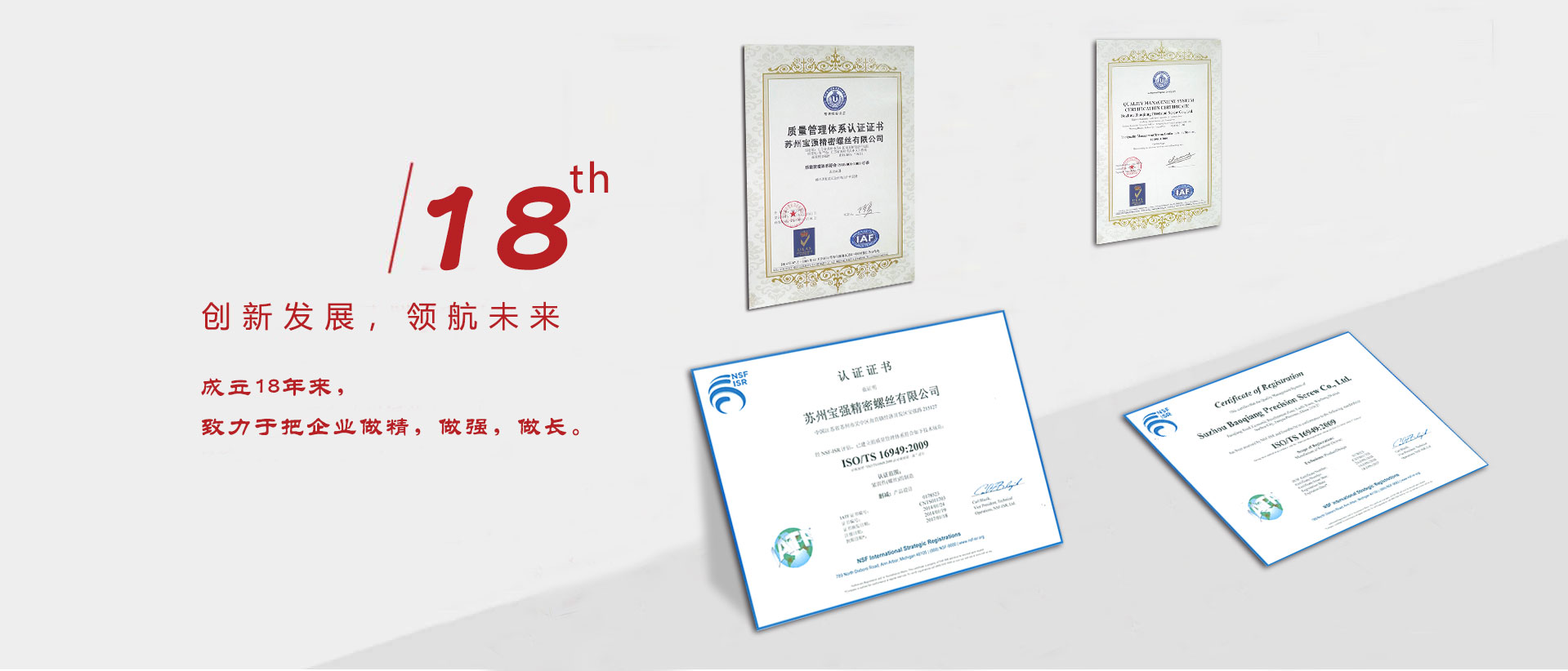蘇州寶強(qiáng)五金與精密螺絲合并,通過TS/16949體系認(rèn)證。