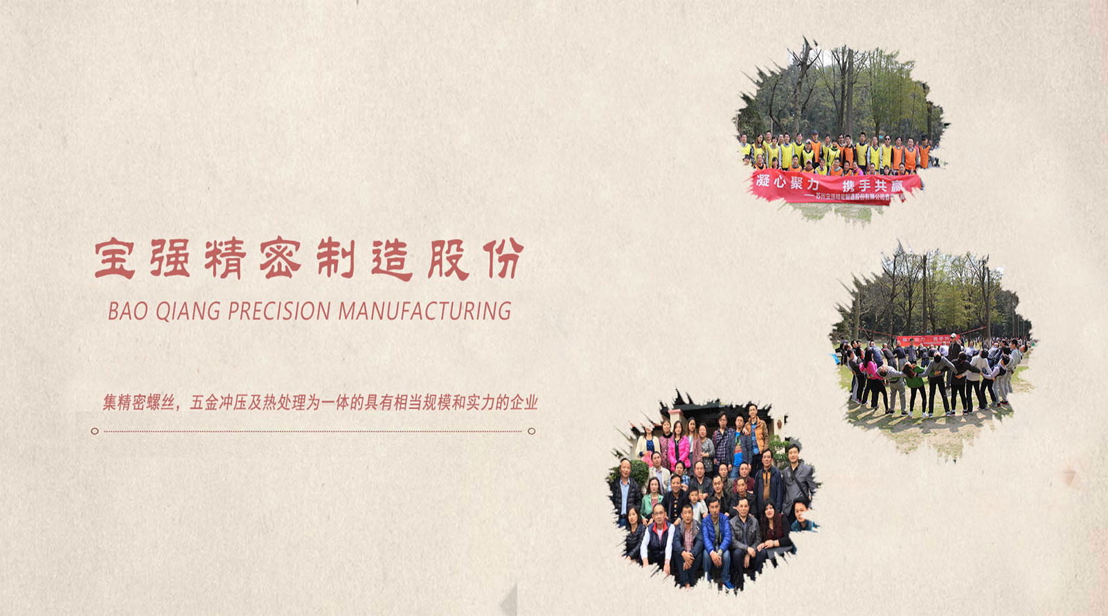 蘇州寶強(qiáng)精密制造股份有限公司(股票代碼:837535始創(chuàng)于2003年,是一家民營企業(yè)、現(xiàn)有資產(chǎn)1.6億元,公司占地面積19125.4㎡, 建筑面積31804.6㎡。經(jīng)過十多年的發(fā)展,現(xiàn)已成為集精密螺絲、五金沖壓、精密注塑、模具制造、熱處理及表面處理為一體的實(shí)力企業(yè)。擁有先進(jìn)的生產(chǎn)設(shè)備和精良的檢測儀器,產(chǎn)品廣泛應(yīng)用于通訊、電子、家電、工程機(jī)械、汽車、輪船等行業(yè),寶強(qiáng)依賴卓越的品質(zhì)和完善的服務(wù)贏得了客戶的信任和市場的肯定。